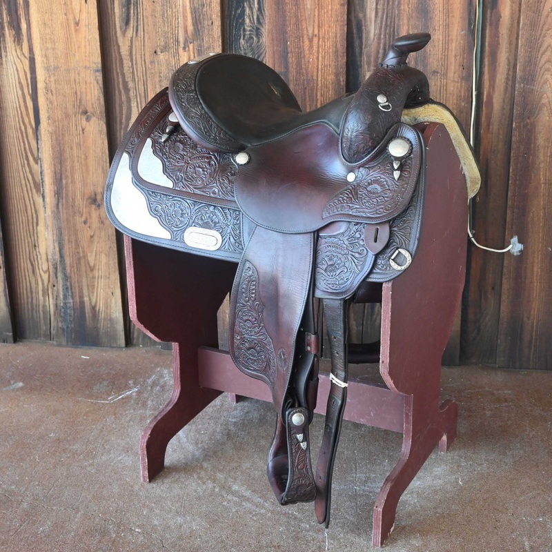 This used 13.5″Circle Y Equitation Trail saddle comes in a heavy oil basket and trophy tooling with a padded seat. For more information call a saddle salesman today at 888-955-2955.