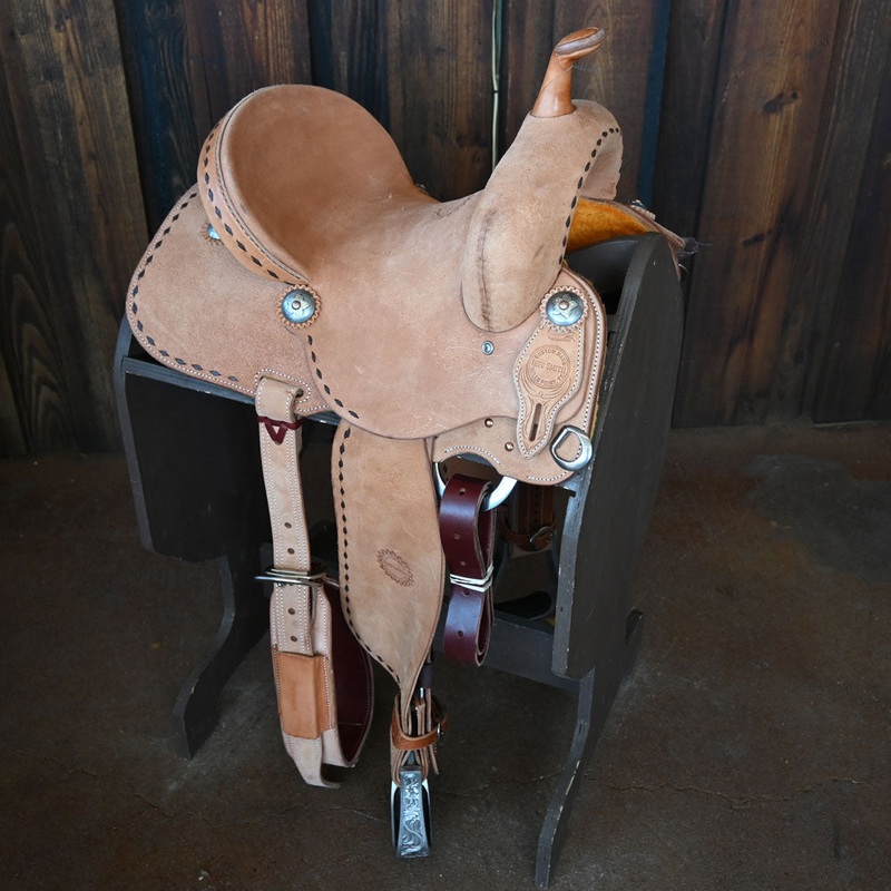 This new 13″ Jeff Smith Barrel saddlecomes in a natural roughout with a hard seat. For more information call a saddle salesman today at 888-955-2955.