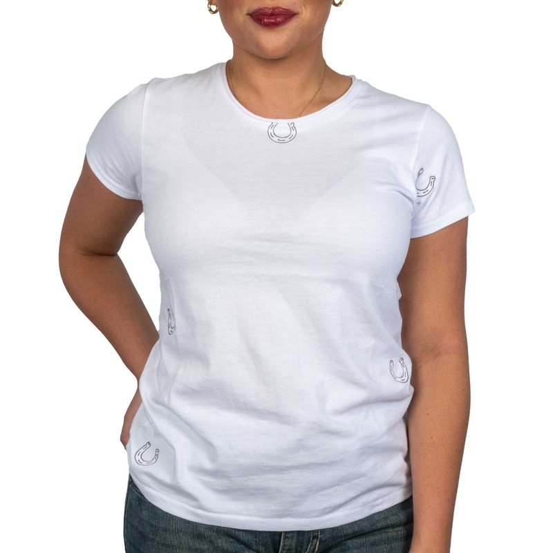 Scattered with a lucky horseshoe motif, this Horseshoe Embroidered Cotton T-Shirt is designed to be the elevated daily staple you reach for again and again. This tee is intentionally made from the softest 100% pima cotton for maximum comfort and breathabilitydont be surprised if you never want to take it off!