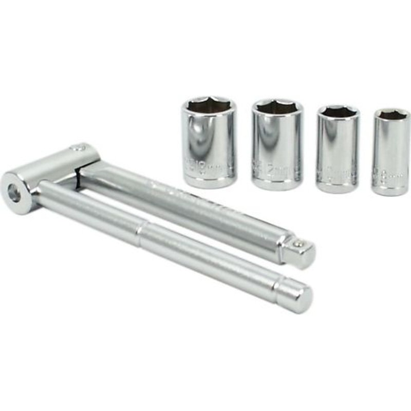 5pc Folding Socket Set with Sliding T Handle Driver, comes with 8mm, 10mm, 12mm and 13mm sockets. 1/4 Drive.