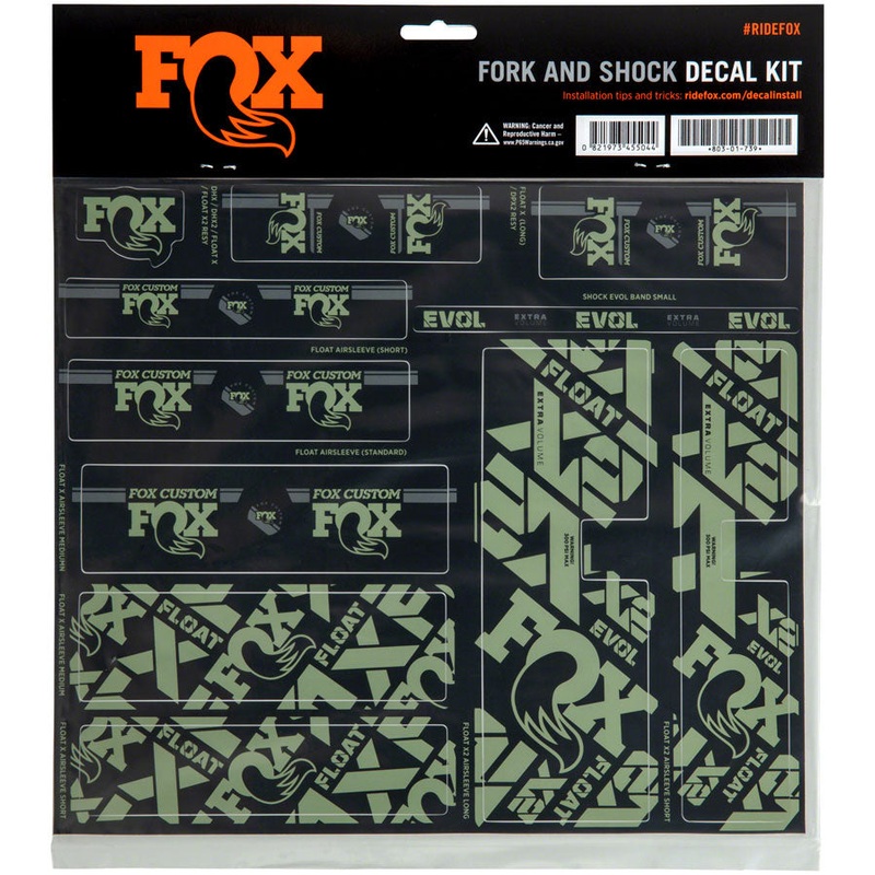 FOX Fork and Shock Decal Kit - Pistachio. FOX fork and shock decal kits are available in various colorways ready to add that custom finish to your bike.Kits include fork and shock decals to fit almost every FOX fork and shock modelSpecific decals for 32 34