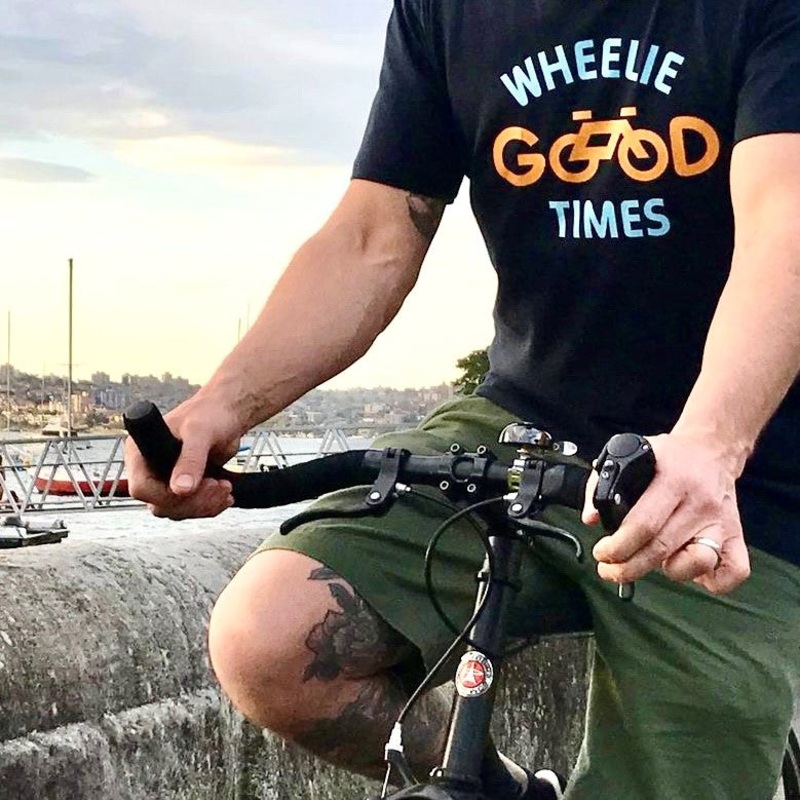 Our first official I like your bike T-Shirt designed by us. On or off your bicycle we always hope you have Wheelie Good Times!