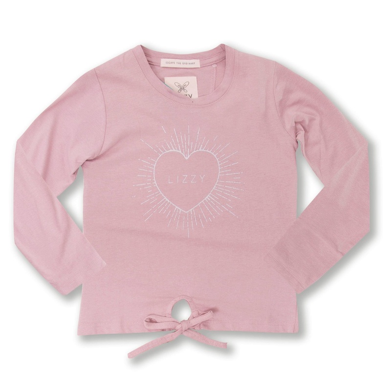 Dress your kid up in style in this cute long sleeve tee with a front tie and glitter print145gsm100% Combed Cotton KnitStyled long sleeve teeFront hem tieFront glitter print