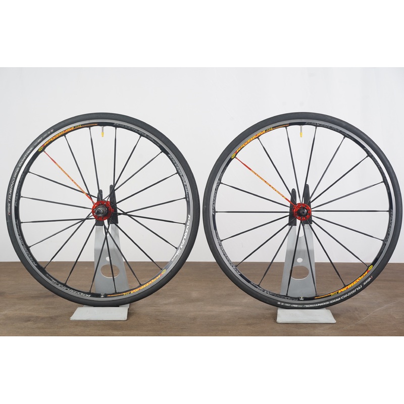 Size: 700cMaterial: AlloyBrake type: Rim brakeTire compatibility: ClincherHubs: Mavic SL CarbonFreehub compatibility: SRAM/Shimano 11 speedAxle spacing: standard (front QRx100mm, rear QRx130mm)Extras included: 25mm Vittoria Rubino Pro tires (