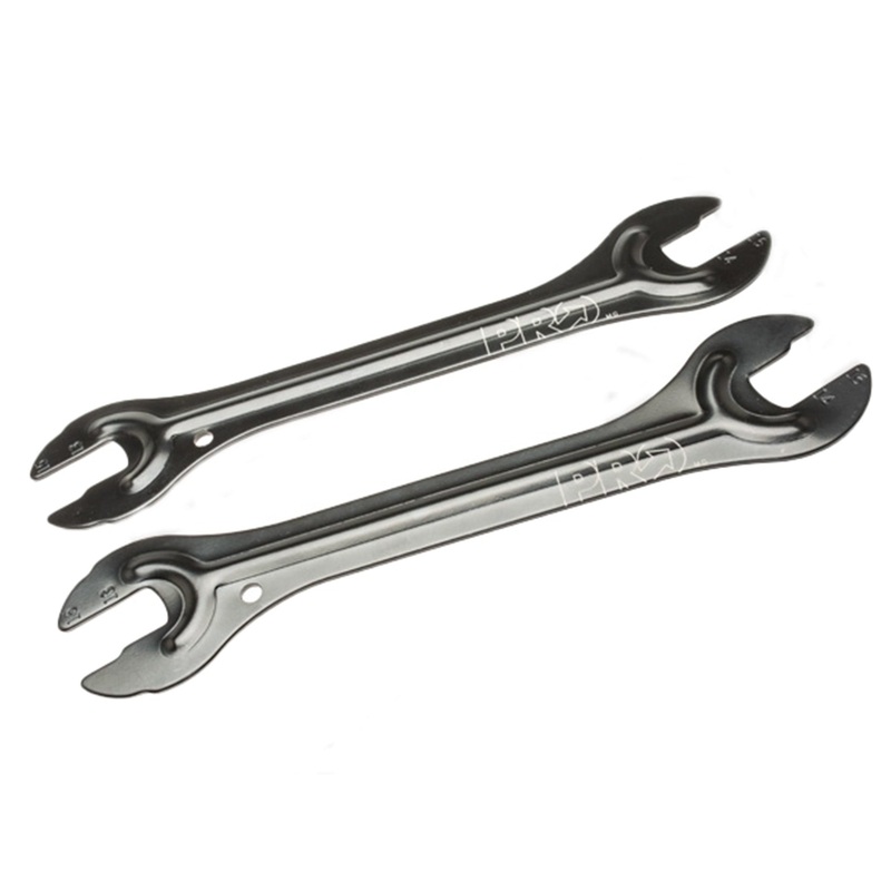 The PRO Cone Wrench Set is a two-wrench set for tightening or loosening the cone and locknuts on traditional cup and cone style hubs. Designed to provide you with a better sports’ bicycle experience the PRO Cone Wrench Set allows you to maintain your traditional cup and cone style hub. The two-wrench set, which feature 13- and 14-millimetre as well as 15- and 16-millimetre wrenches, provide ample leverage for loosening or tightening cones and lock-nuts.