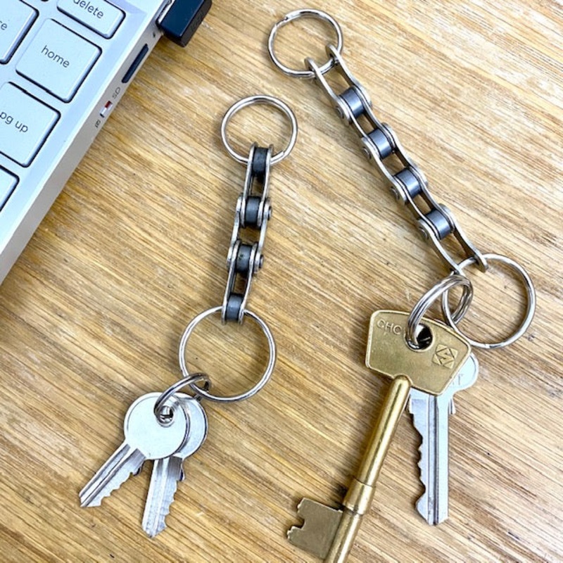 Key rings made from bicycle chainsInstead of disposing of chain linksnot needed when servicing a bike we decided to do something creative. We hope you love themSpecifications:Small: ThreelinksLarge: Five links