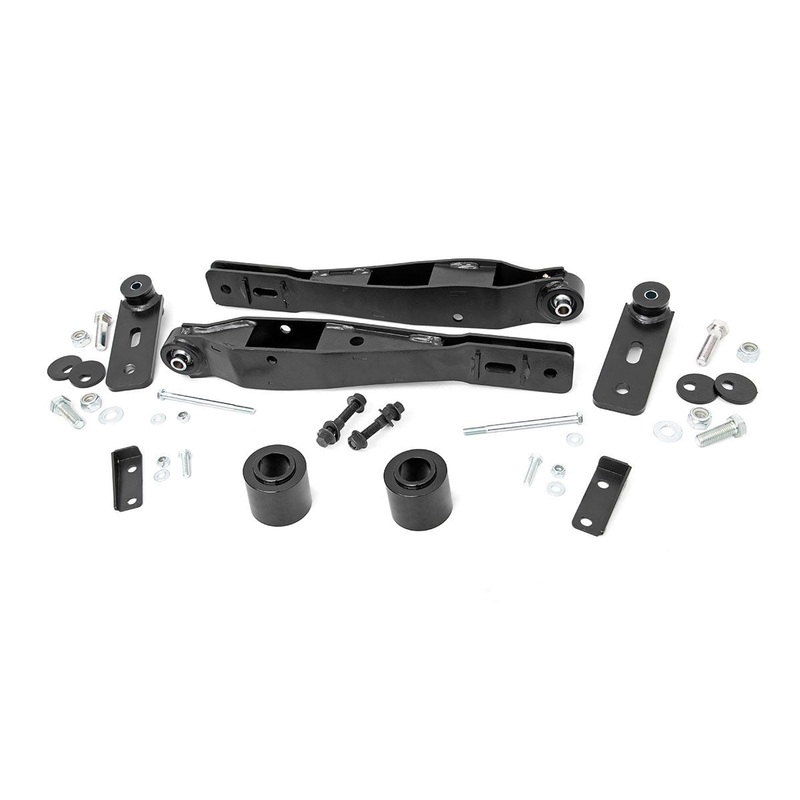 Give your Jeep Patriot aggressive good looks with Rough Country’s 2in Leveling Kit! This innovative and easy-to-install kit offers enough increased ground clearance to run larger tires and levels the front of the vehicle with the rear for a meaner look that’s sure to turn heads.Rough Country’s 2in Jeep Patriot Lift Kit features a set of upper and lower strut spacers that work together to provide the optimum amount of lift while protecting the geometry of your CV angles. A set of innovative lower control arms are also included, and feature Rough Country’s X-Flex Joints, which promote a better bushing lifespan and overall articulation, and are able to handle side load more like the factory design than other kits on the market. These adjustable arms also make it much easier to dial-in the perfect alignment!This easy-to-install kit features a 100% bolt-on installation process with no cutting or drilling required to install! Includes a Lifetime Replacement Guarantee! \\