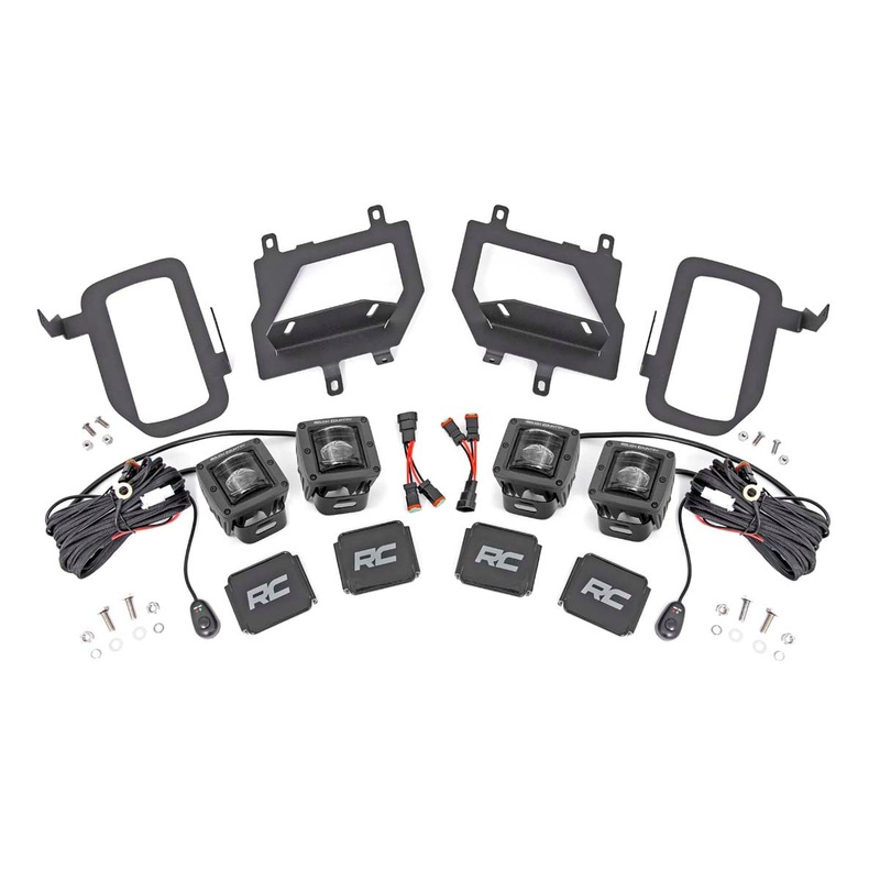 Bring the state-of-the-art power and efficiency of LED lighting to your Ford F-150 factory fog lights with Rough Country’s new Quad 2-inch Fog Light LED Kit. This clever LED & mount combo allows you to swap out the factory fog lights with a double set of Rough Country’s 2-inch LED Cubes, offering increased illumination and killer, good looks that blend right in with the front-end design.The easy-to-install mounts feature a 100% bolt-on install process and can be performed with common tools in no time flat. Each kit includes a set of wiring adapters that quickly connect to your existing fog light wiring harness for instant installation!Each kit also features an optional flat-wound, braided, IP68 waterproof wiring harness with a toggle switch and in-line fuse. Choose between Chrome-Series or Black-Series LEDs to match the look you want! For peace of mind, each LED also includes Rough Country’s 3-year Warranty and each mount includes a Lifetime Replacement Warranty.