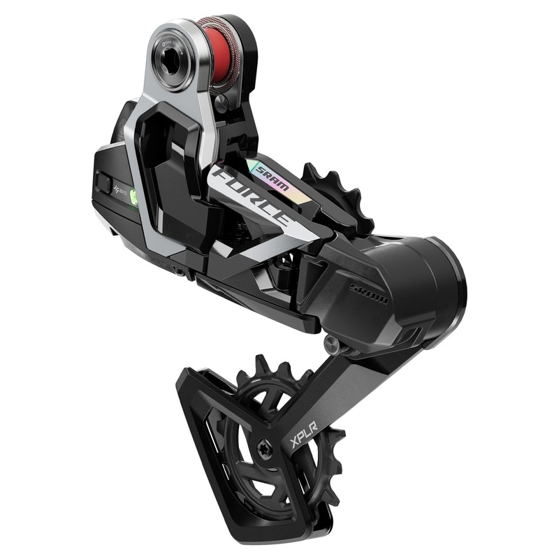 Full Mount resilience. No bent hangers after impacts or travel. No adjustment screws. Just fast, precise shifting constructed for gravel. The 1x-specific Force XPLR AXS rear derailleur provides incredible chain management, and the straight parallelogram de