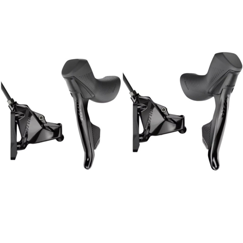 The SRAM Rival D1 eTap AXS Shift Brakeset is a wireless electronic component that integrates shifting and braking functions for road and gravel bikes. It features intuitive paddle shifters for precise gear changes and hydraulic disc brakes for reliable sto
