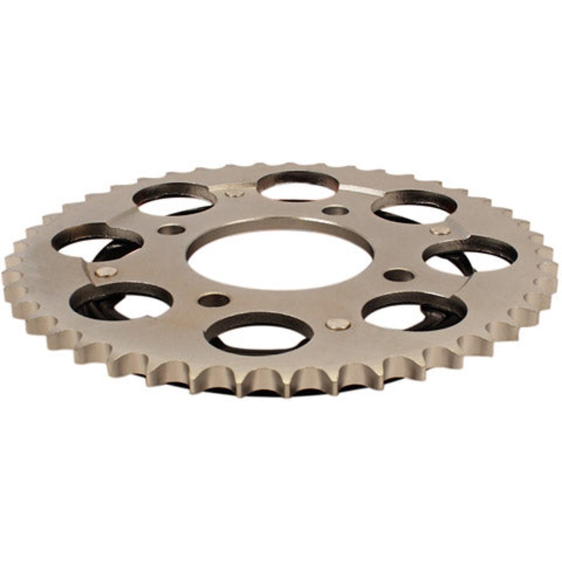 Steel Rear Sprocket with Dust Plate - 45 Tooth - Replaces OEM # 41205-300-000For 530 Chain Setup as came stock with the bike below.Fits: REARS on Honda CB750K (1969) Please Count your sprocket teeth and check your chain length before ordering to ensure thi
