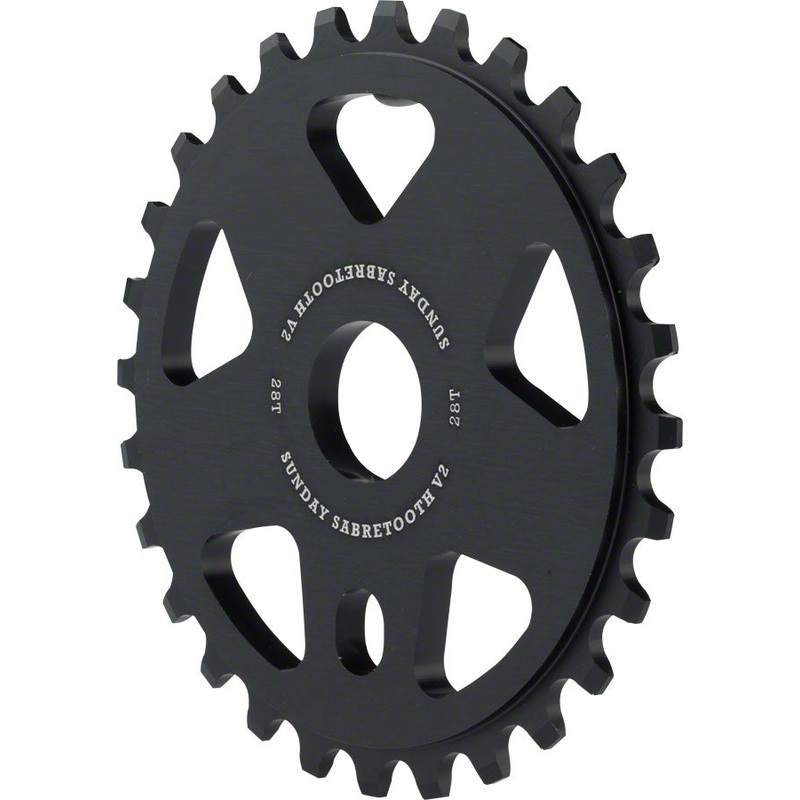 Sunday Sabretooth V2 Sprocket – 28t Black. The Sunday Sabretooth V2 sprocket is a 6mm (1/4) thick 6061-T6 aluminum sprocket.