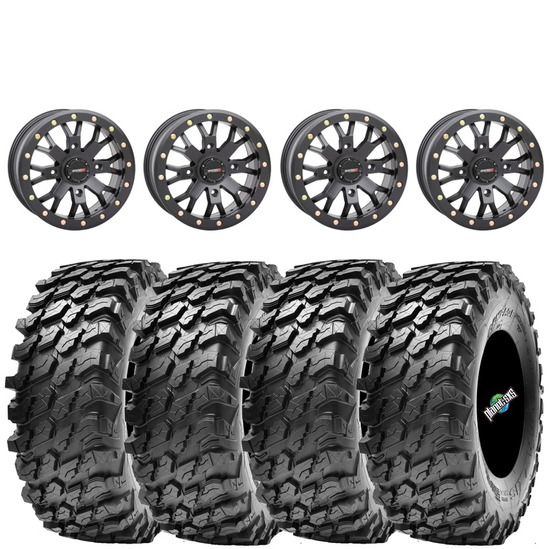 This pre-mounted UTV wheel and tire combo pairs aggressive Maxxis Rampage 8-ply tires with tough and lightweight System 3 SB-4 beadlock wheels in a premium matte black finish. Perfect for riders who want durability, performance, and bold off-road style.