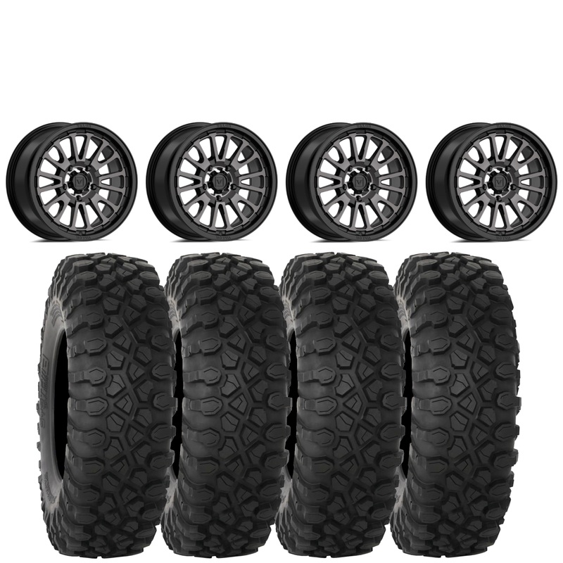 Get a set of (4) Valor Offroad V14 14×7/15×7 5+2 (+20mm) wheels mountedon 10-ply radial System 3 XC450 tireswith vehicle specific lug nuts.