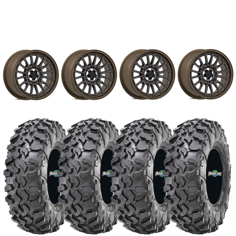 Get a set of (4) Valor Offroad V14 14×7/15×7 5+2 (+20mm) wheels mountedon 8-ply radial Maxxis Carnivore tires with vehicle specific lug nuts.