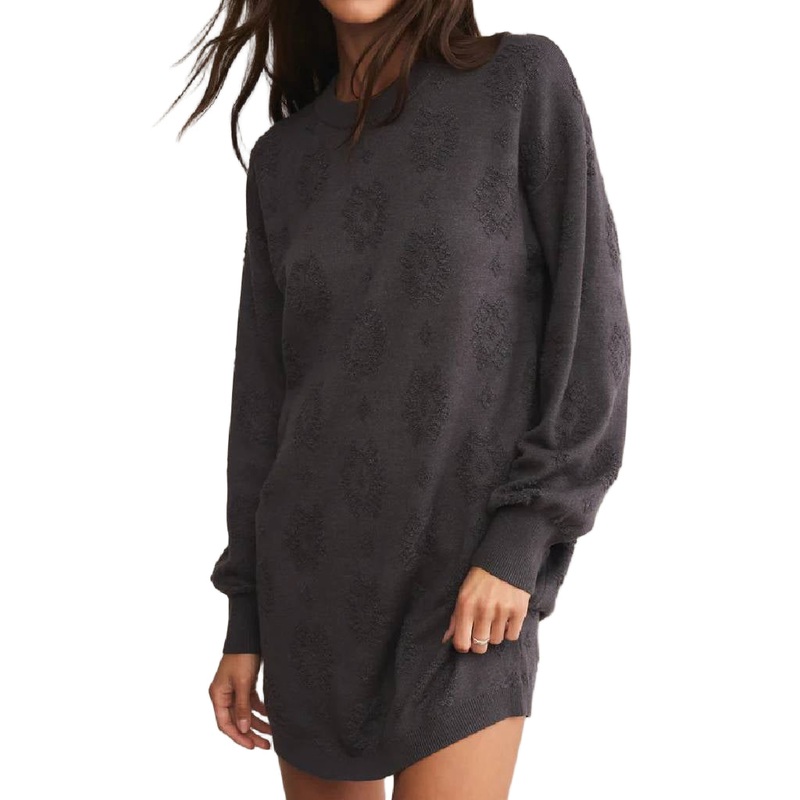 Style # ZD254596This jacquard mini dress combines cozy yarns with a polished silhouette. With long sleeves and a relaxed fit, its equal parts comfort and chic.Color: Charcoal HeatherRelaxed fitJacquard: 50% Viscose, 30% Polyester, 20% NylonCrew neckLong sl